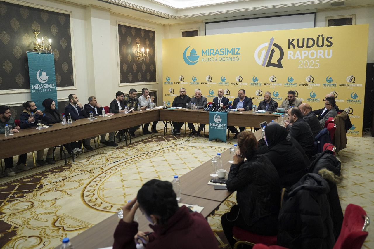 Fatih’teki bir otelde düzenlenen basın toplantısında raporu okuyan Mirasımız Kudüs Derneği Medya Sorumlusu Nihat Topcu, İsrail’in 2025’te Kudüs’te gerçekleştirdiği insan hakları ihlallerinden bahsetti.