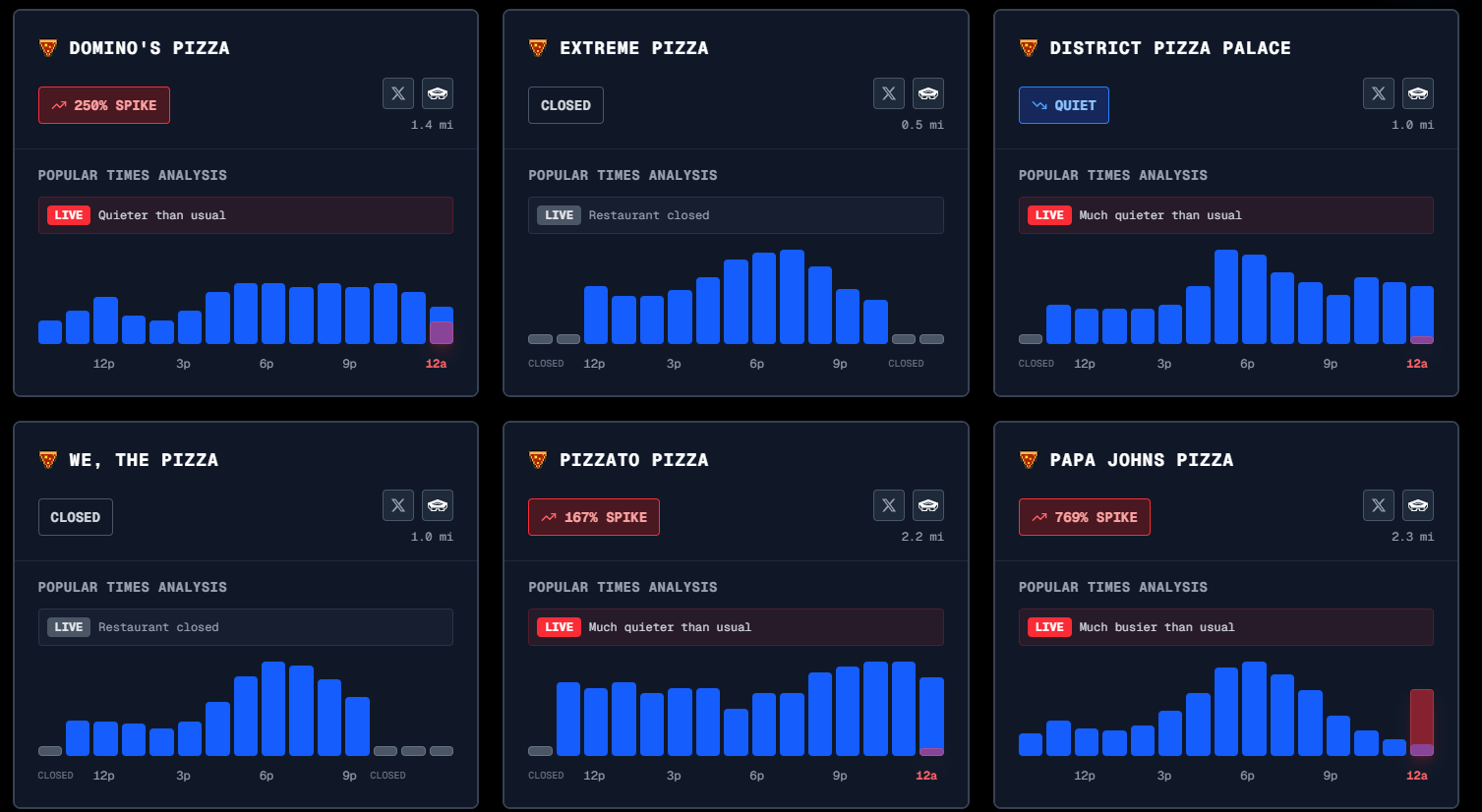 Paylaşılan verilere göre, Pentagon’a yakın bir Papa John’s şubesinde siparişlerin normalin yüzde 770 üzerine çıktığı tespit edildi. Domino’s, Pizzato Pizza ve District Pizza Palace gibi diğer zincirlerde de benzer şekilde “olağan dışı yoğunluk” yaşandığı aktarıldı.
